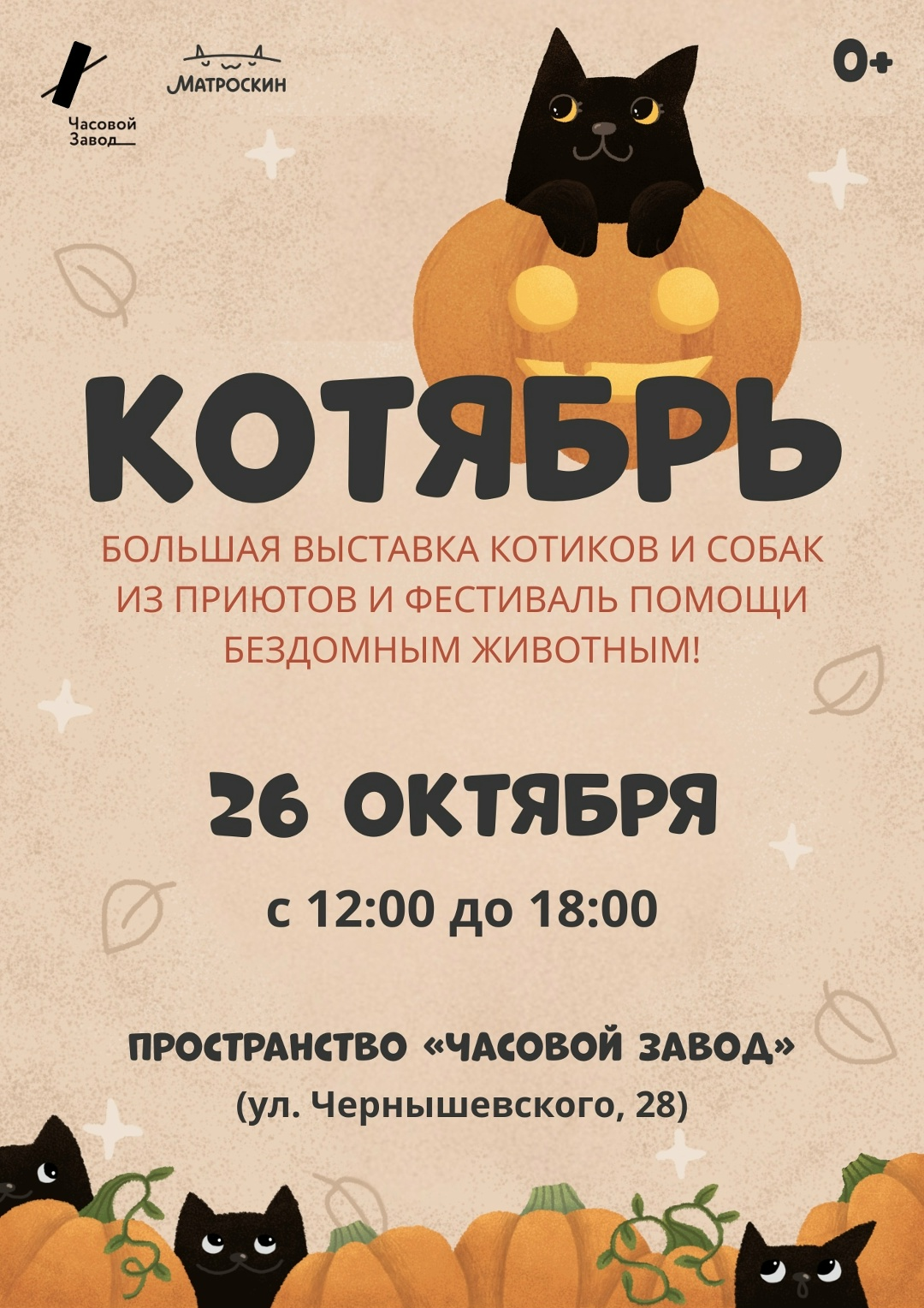 БОЛЬШАЯ ВЫСТАВКА КОТИКОВ из приюта Матроскин на фестивале Котябрь будет уже 26 октября с 12 до 18 часов на Часовом заводе по адресу Чернышевского, 28!